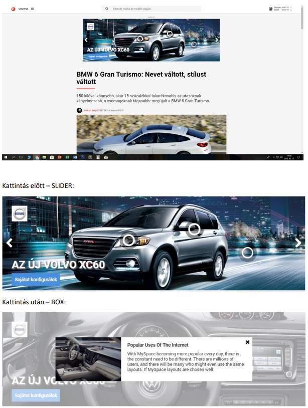 First view-ban megjelenő különleges rich media felület. A 970x300 px méretű slideren három